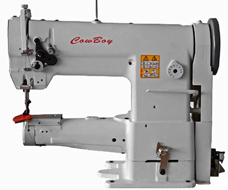 The Cowboy CB341 is an ideal machine for sewing the edges of belts, straps, pancake holsters, shaped and round cases, purses, hats and caps, backpacks and heavy garments (like jeans). This is also a perfect machine for sewing around arm holes, hems and cuffs on both cloth and leather garments, as the circular work can freely revolve around the cylinder arm.