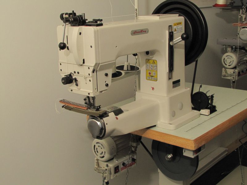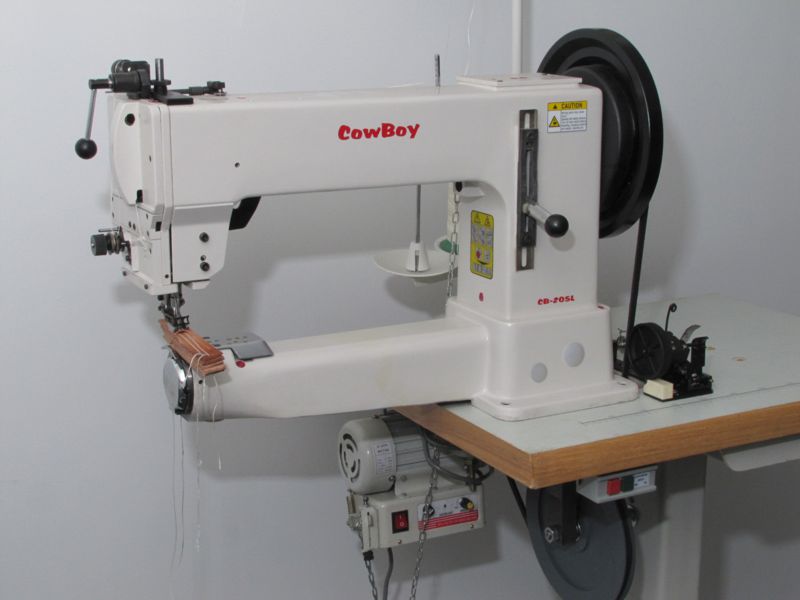 Cowboy industrial and leather sewing machines are built as tough as tanks and are capable of sewing leather, cloth, webbing, bioplastic and other materials. Cowboy machines are available in flat bed, post bed, and cylinder arm models, covering all types of industrial sewing operations.